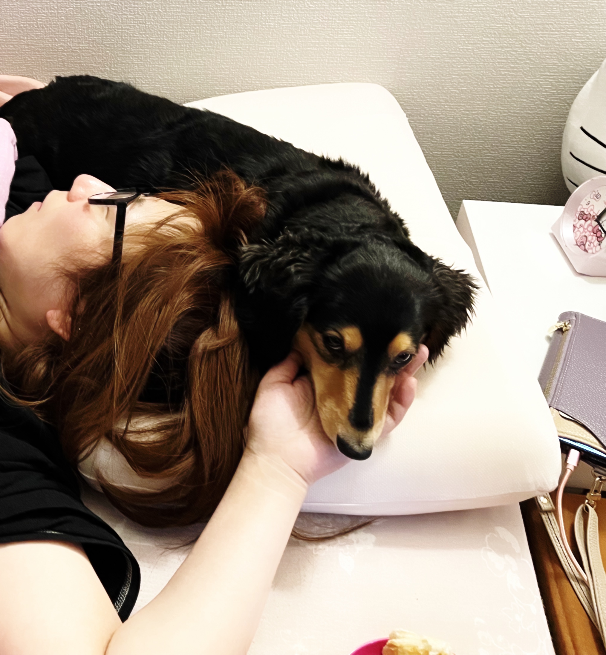 枕を使ってはいるけれど、頭上で息子を愛でているU•ﻌ•U