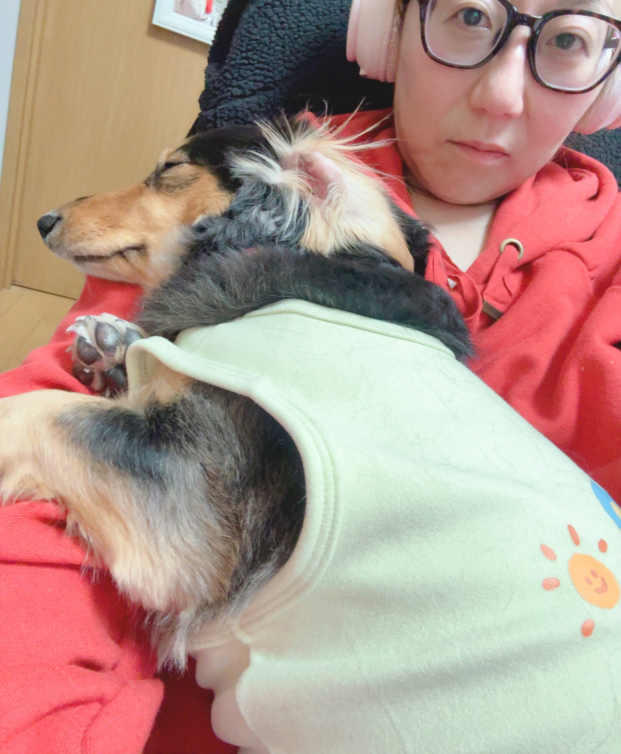 お着替えした後は、ママの上に乗っかってぐっすりスヤスヤ( ᵔᴥᵔ )