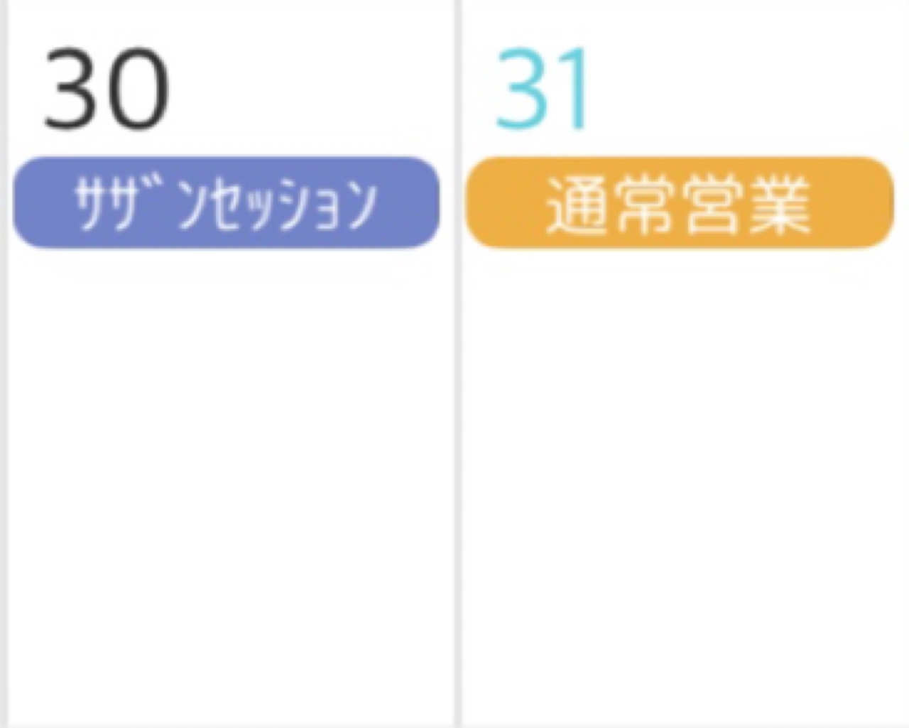 30日(金)の「サザンセッション会」と31日(土)の通常営業のみとなりますのでご了承ください。