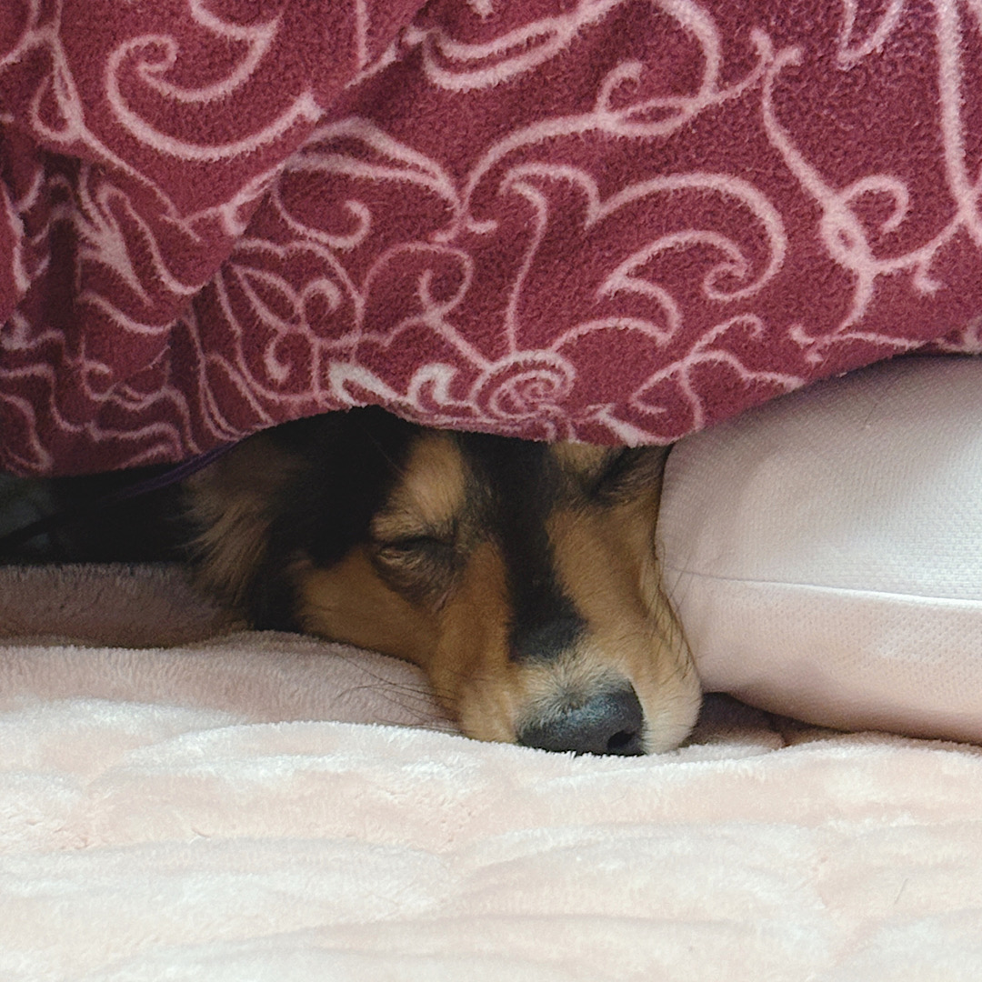 息子は犬らしからぬ、わたしの部屋でも母ちゃんの部屋でも、基本的にはお布団の中でぬくぬくしてます♨︎ ( ‘ㅅ‘ U)