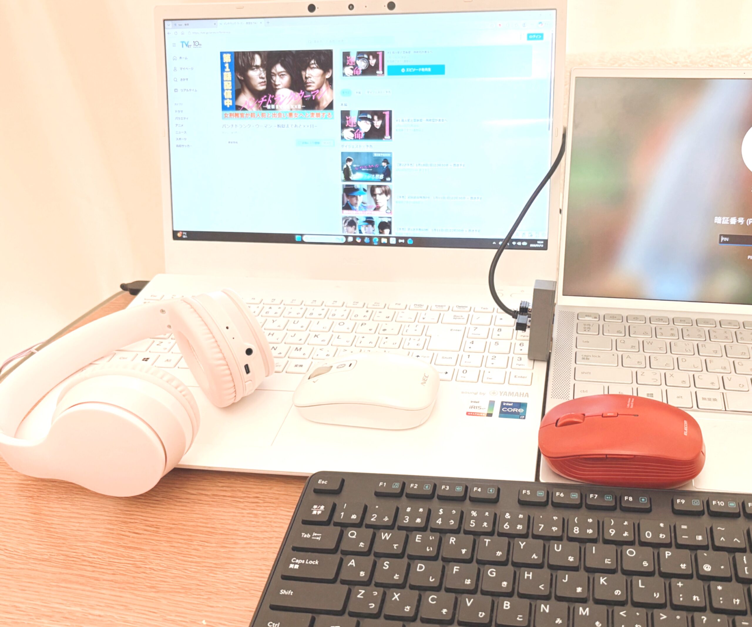 パソコンを2台並べて、ドラマをTVerで「ながら見」のお仕事同時進行!