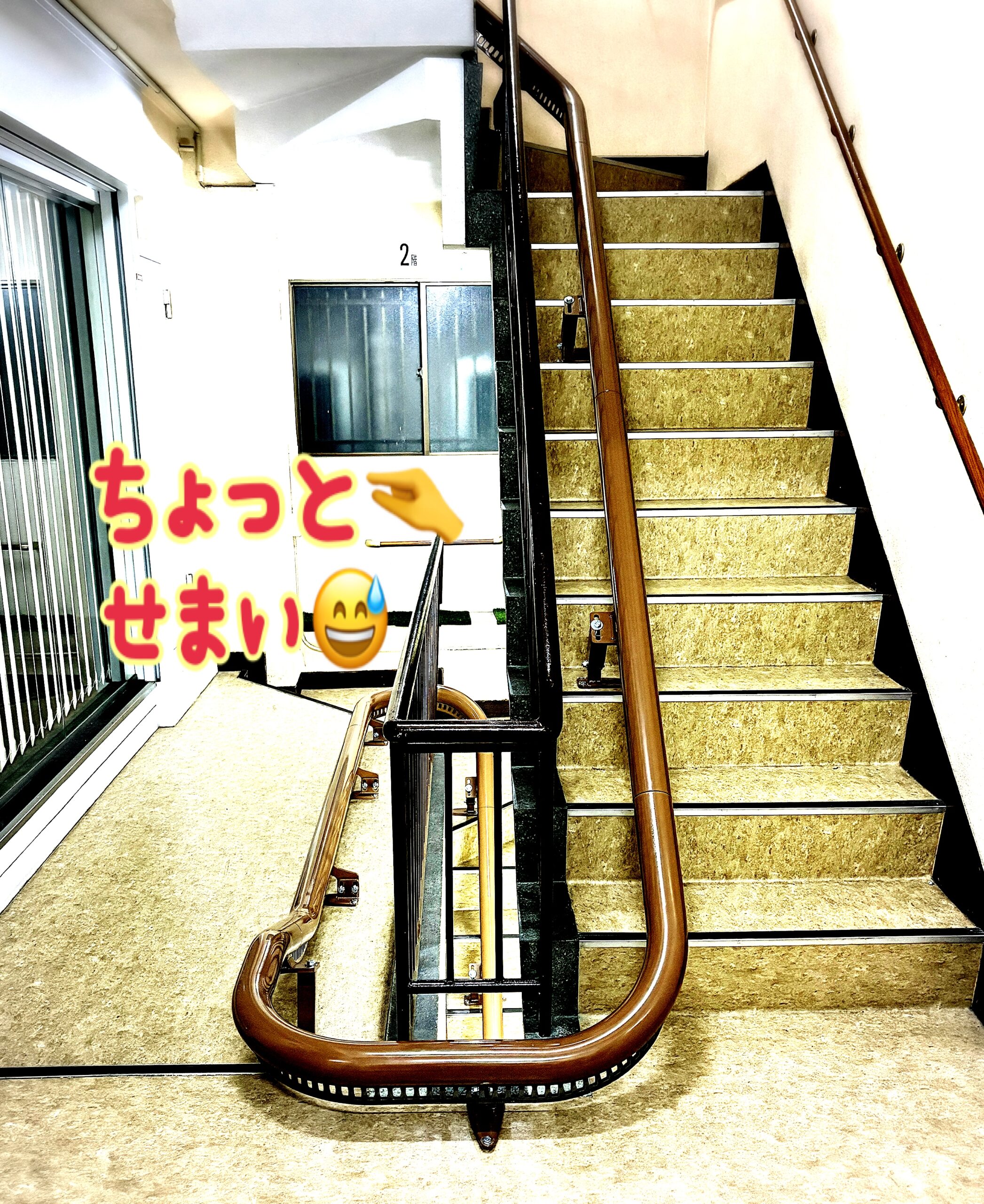 上の階に住む、大家さんのご事情によりビルの階段に椅子ごと上がれるエスカレーター的なもの(?)を設置予定です。