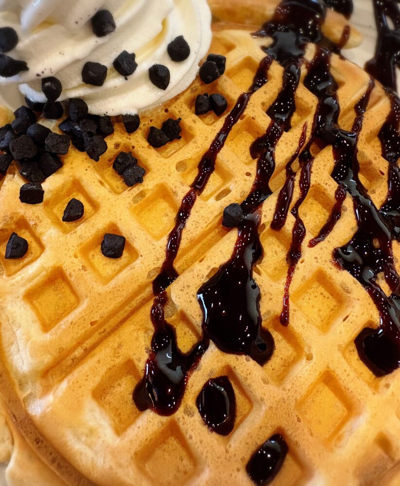 ワッフルにももちろん手を出して、欲張っていつもより生地を多めに垂らしたら、溢れちゃって大パニック╰(°ㅂ。)╯